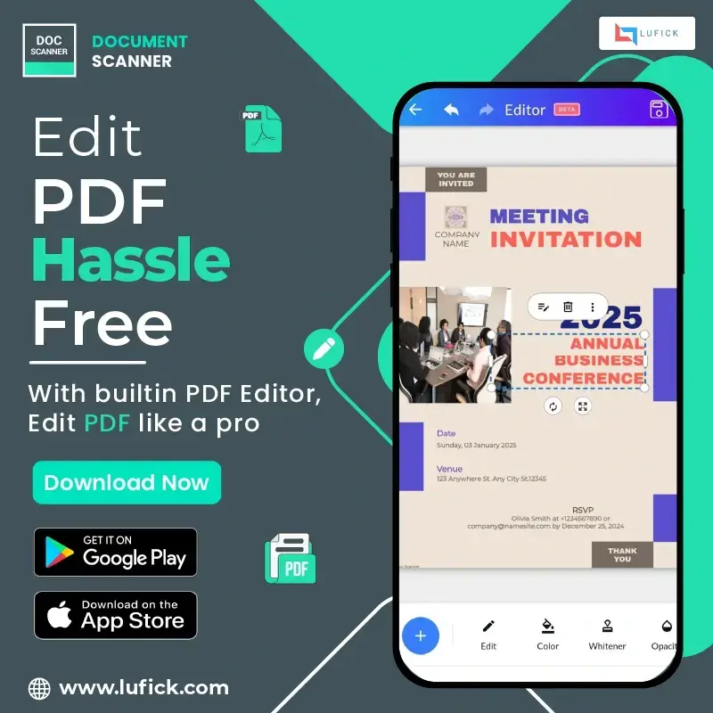Students need fast and efficient tools to manage academic workloads, while professionals require accuracy, branding, and smooth workflow management. The PDF Editor in your Document Scanner app brings these worlds together by offering smart, simple, and powerful editing features for everyone.
